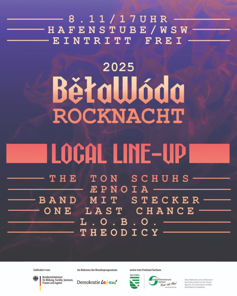 Auftritte: 08.11.2025 Telux Weißwasser, 30.05. Weißwasser; 05.07.25 Schusterhof; 16.08.2025 Lindenhof Bad Muskau; 22.08. – 24.08.2025 Winterberg